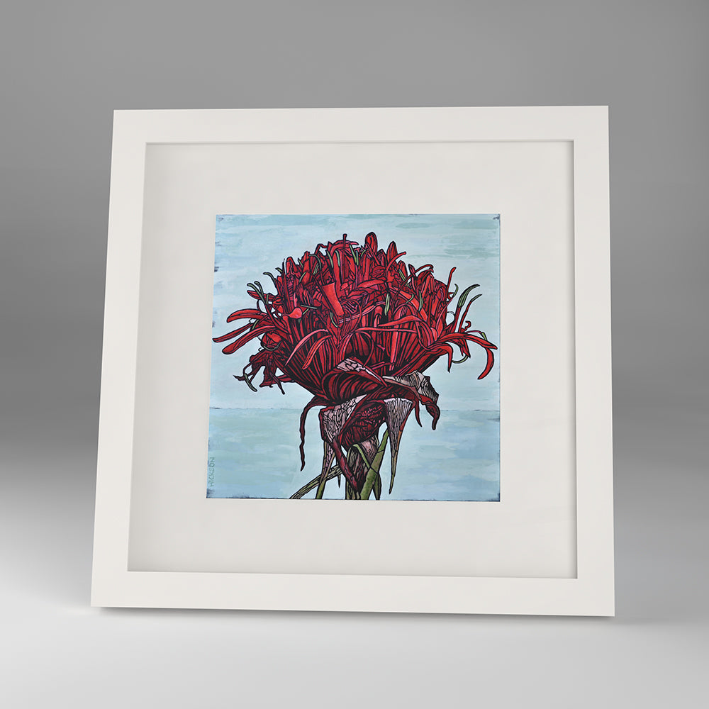 This archival digital print on 300gsm archival cotton rag paper with stable colour fast inks that won’t fade (if kept out of direct sunlight).